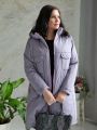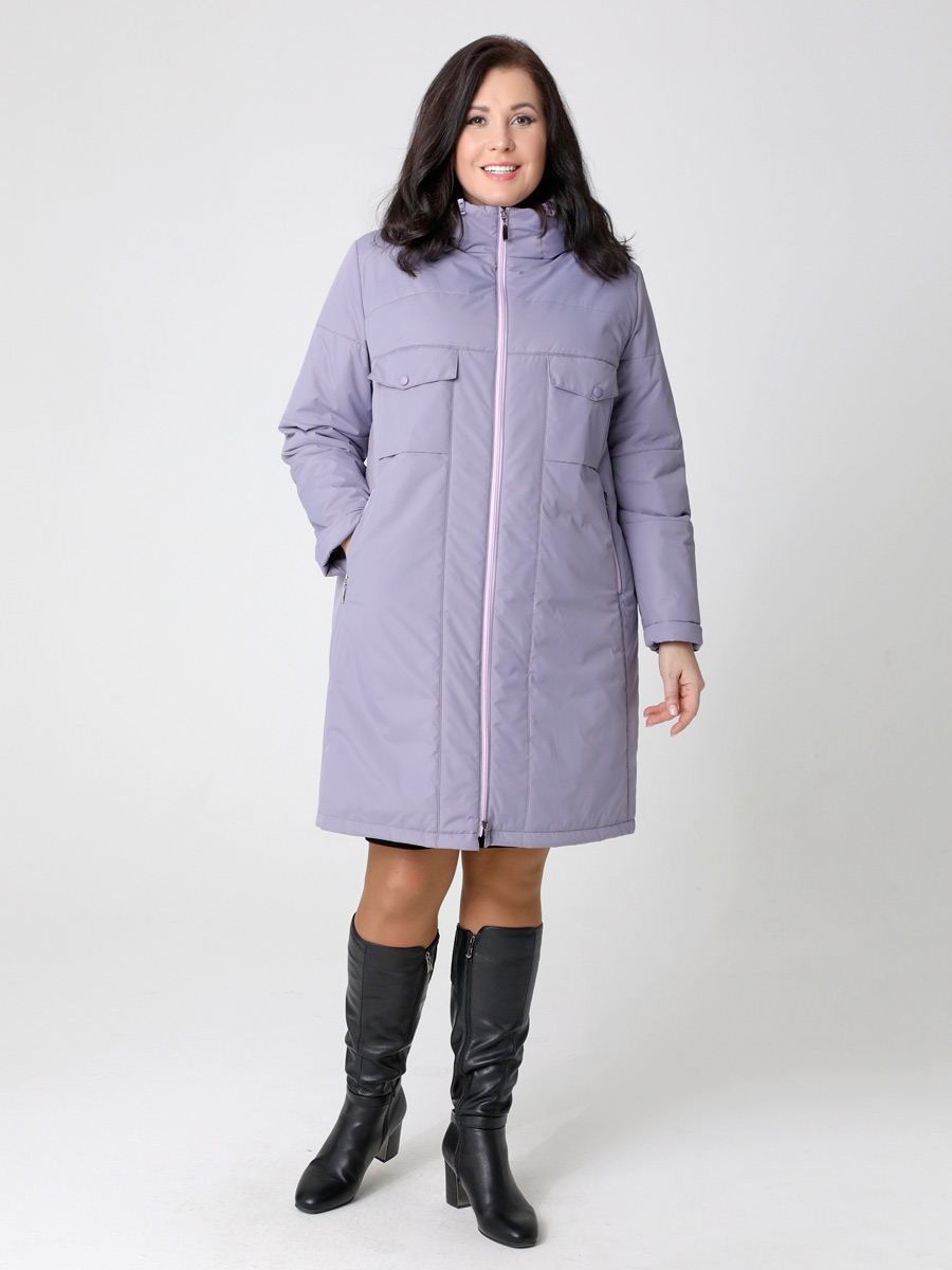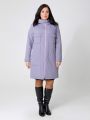 Женский демисезонный утепленный серо-сиреневый плащ больших размеров прямого силуэта от бренда Диззи вэй (Dizzy way). Плащ с легким заужением книзу. Застежка - на двухзамковую молнию, что позволяет при необходимости регулировать комфортность шага. Воротник - стойка, переходящая в капюшон. Две пары функциональных карманов: нижние застегиваются на молнию, верхние - на кнопку. Есть внутренний кармашек на молнии. Длину втачного рукава можно регулировать за счет отворота. Плащевая ткань имеет водоотталкивающую пропитку.