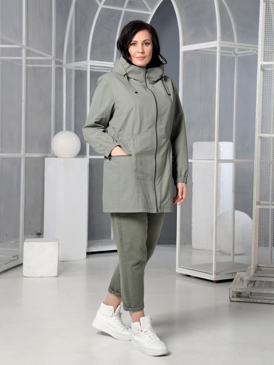 Женское демисезонное утепленное темно-зеленое пальто больших размеров прямого силуэта от бренда Диззи вэй (Dizzy way). Застежка на двухзамковую молнию позволяет регулировать ширину шага. Воротник - стойка, переходящая в капюшон. Плащевая ткань имеет водоотталкивающую пропитку,