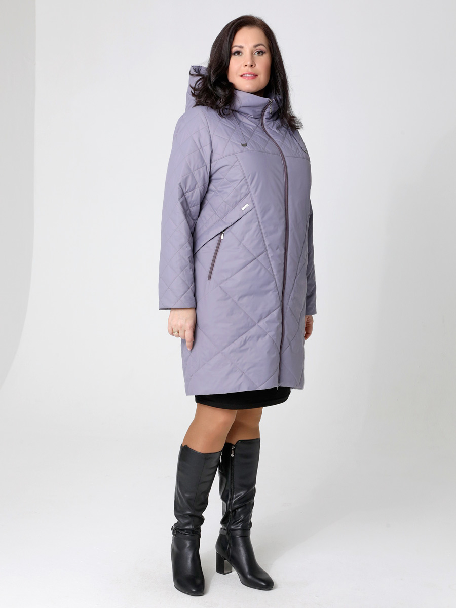 Женское демисезонное утепленное светло-серое пальто больших размеров прямого силуэта от бренда Диззи вэй (Dizzy way). Застежка на двухзамковую молнию позволяет регулировать ширину шага. Воротник - стойка, переходящая в капюшон. Плащевая ткань имеет водоотталкивающую пропитку,