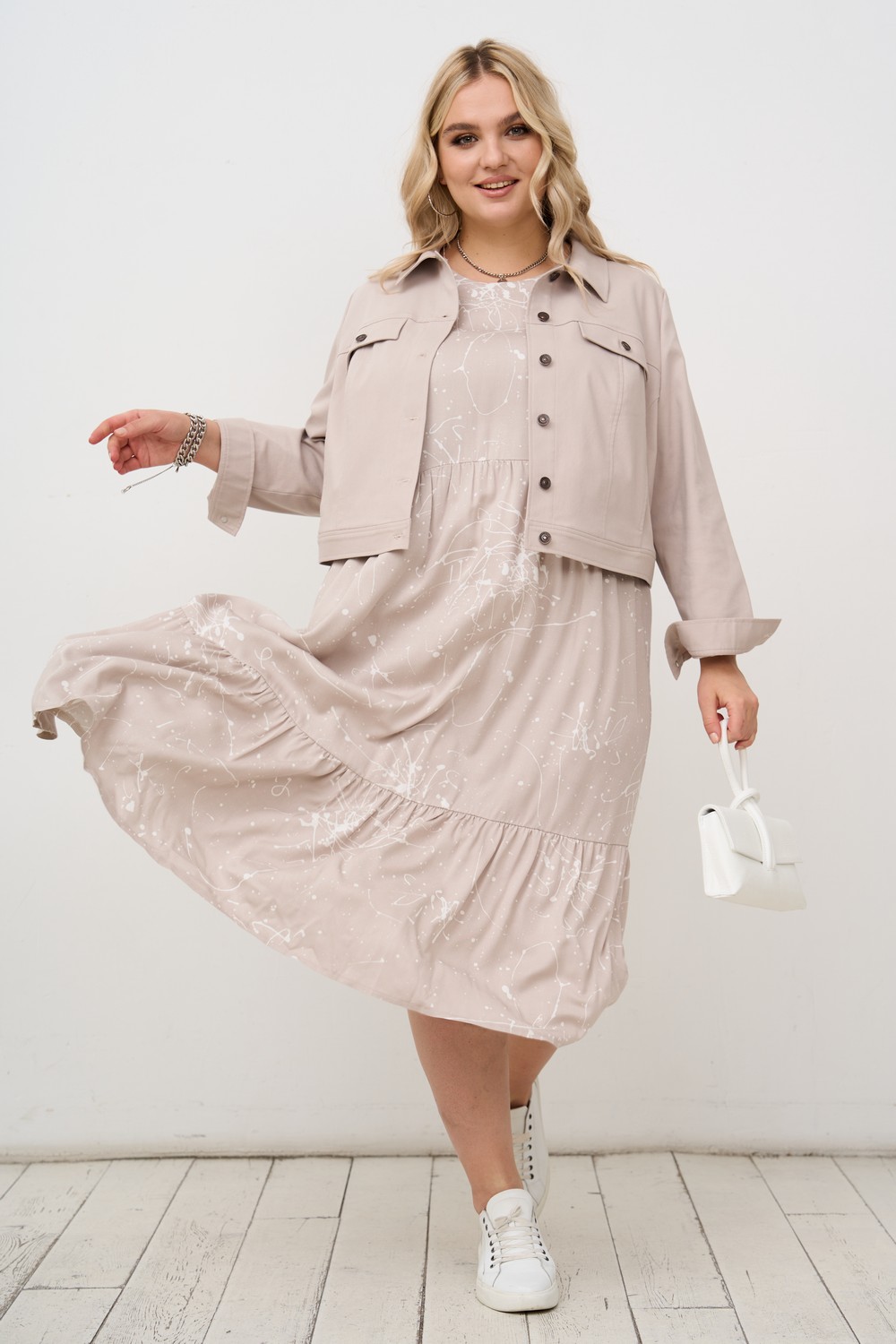 Женский бежевый укороченный жакет больших размеров из хлопка от бренда Интикома (Intikoma ). Укороченная длина жакета делает модель универсальным вариантом для ношения под платья, юбки и брюки любой ширины создавая правильную пропорцию. Базовый бежевый и необычный зеленый цвет,модный фасон жакета, делает незаменимым спутником в гардеробе.Модель выполнена из хлопка с эластаном и очень приятна к телу. Рукав полной длины с притачной манжетой. Застежка на пуговицы-болты, в рельефах по переду – удобные вместительные карманы.