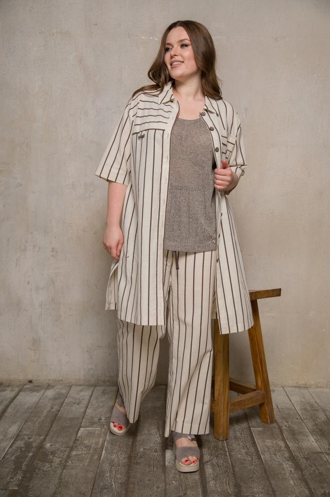 Описание: Женская удлиненная бежевая в полоску рубашка больших размеров от бренда Терра (Terra). Стильный комплект можно составить с брюками ВК24-056.