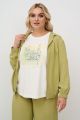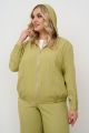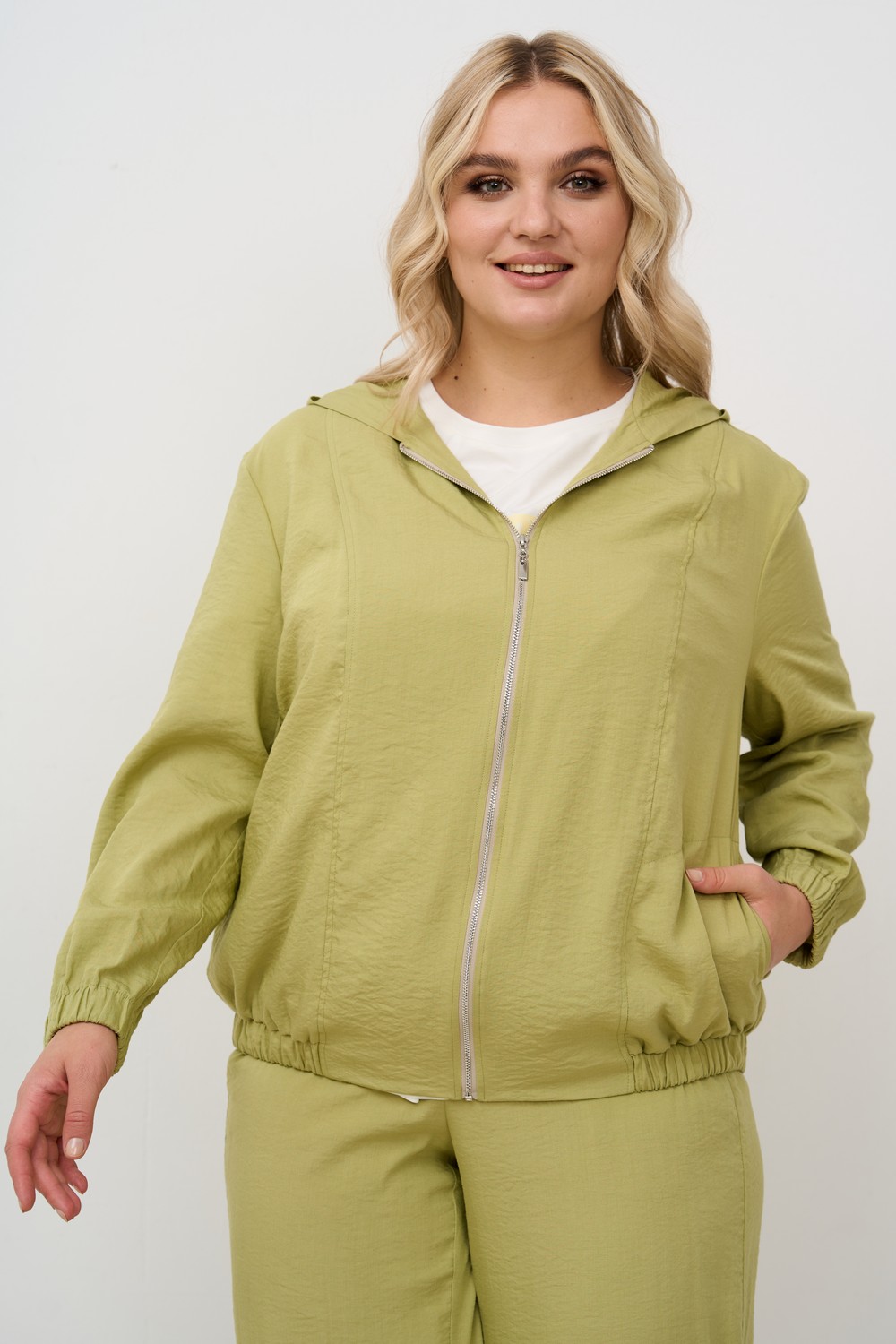 Описание: Женский оливковый жакет-бомбер большого размера из качественной поливискозы от бренда Интикома (Intikoma). Детали: спущенное плечо, длинный рукав на резинке по низу. Капюшон, центральная застежка на молнию, по низу изделия частично резинка, карманы по переду в рельефе. Бомбер без подкладки. Стильный комплект можно составить с брюками 724017