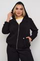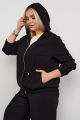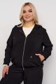 Женский черный жакет-бомбер большого размера из качественной поливискозы от бренда Интикома (Intikoma). Детали: спущенное плечо, длинный рукав на резинке по низу. Капюшон, центральная застежка на молнию, по низу изделия частично резинка, карманы по переду в рельефе. Бомбер без подкладки. Стильный комплект можно составить с брюками 724017