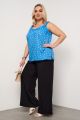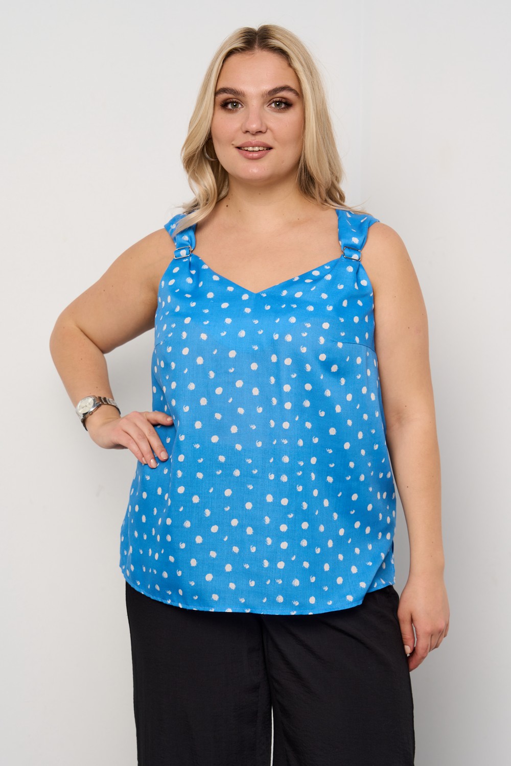 Женский голубой в горох топ большого размера из вискозы от бренда Интикома (Intikoma). Детали: V- образный вырез горловины, прямой силуэт, разрезы в боковых швах.