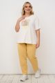 Описание: Женская белая яутболка большого размера с принтом из вискозы от бренда Интикома (Intikoma). Актуальный прямой силуэт, рукава длиной до локтя и разрезы по низу в боковых швах подарят комфорт и ощущение свободы. На полочке и спинке имеются продольные ассиметричные рельефные защипы, визуально сужающие фигуру. Низ изделия разноуровневый с небольшим перепадом на спинку.