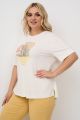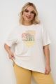 Женская белая яутболка большого размера с принтом из вискозы от бренда Интикома (Intikoma). Актуальный прямой силуэт, рукава длиной до локтя и разрезы по низу в боковых швах подарят комфорт и ощущение свободы. На полочке и спинке имеются продольные ассиметричные рельефные защипы, визуально сужающие фигуру. Низ изделия разноуровневый с небольшим перепадом на спинку.