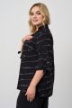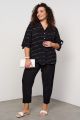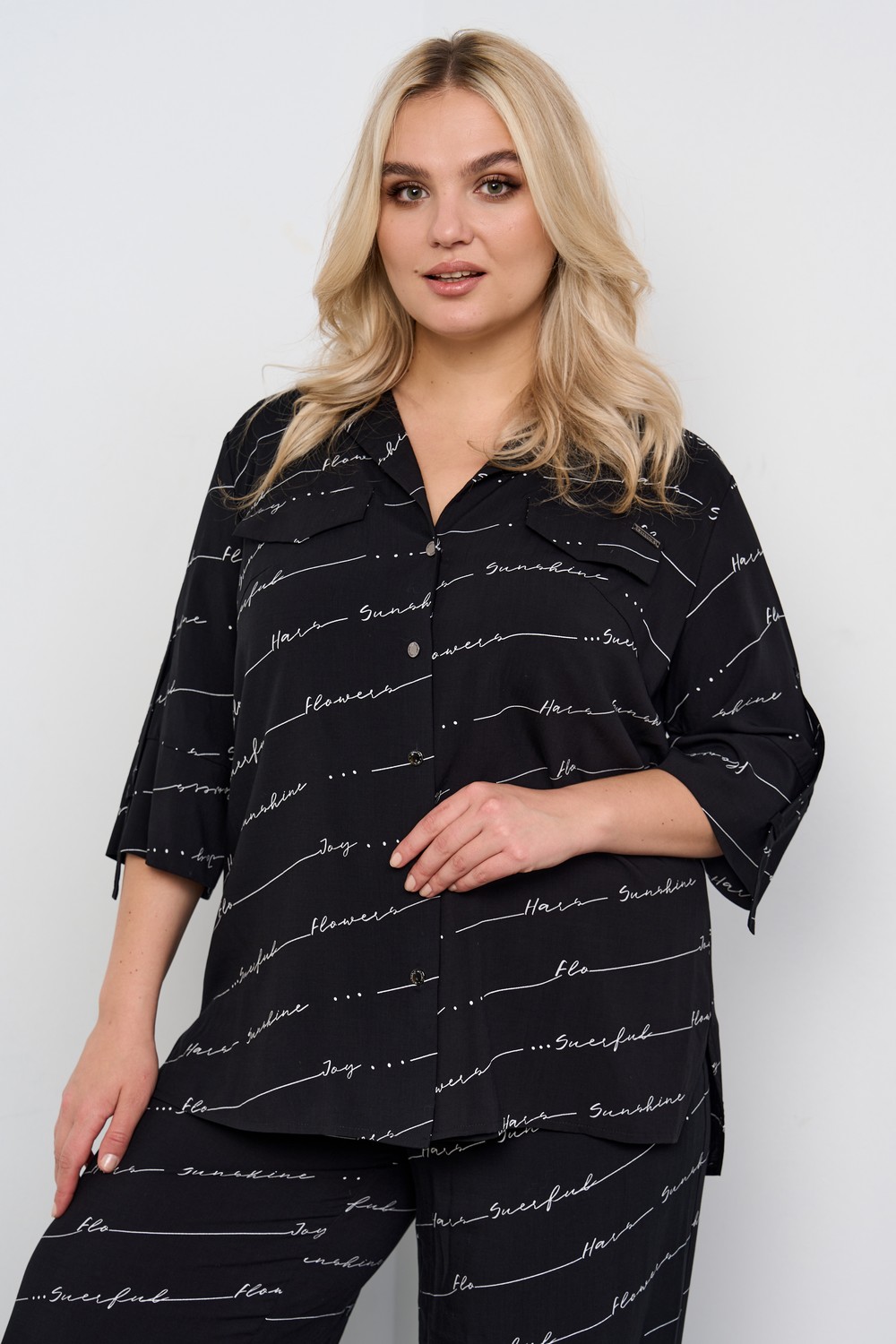 Женский черный с надписями жакет-рубашка бльшого размера из вискозы от бренда Интикома (Intikoma). Стильный комплект можно составить с брюками 724001. Однобортный, с отложным воротником с лацканами, c супатной застежкой на пуговицы. Отличную посадку по груди обеспечивают вытачки. Изделие дополнено поясом, который выгодно подчеркивает линию талии, делая силуэт более женственным. Модель выполнена из вискозного полотна, которое отлично дышит и поддерживает оптимальную температуру тела.