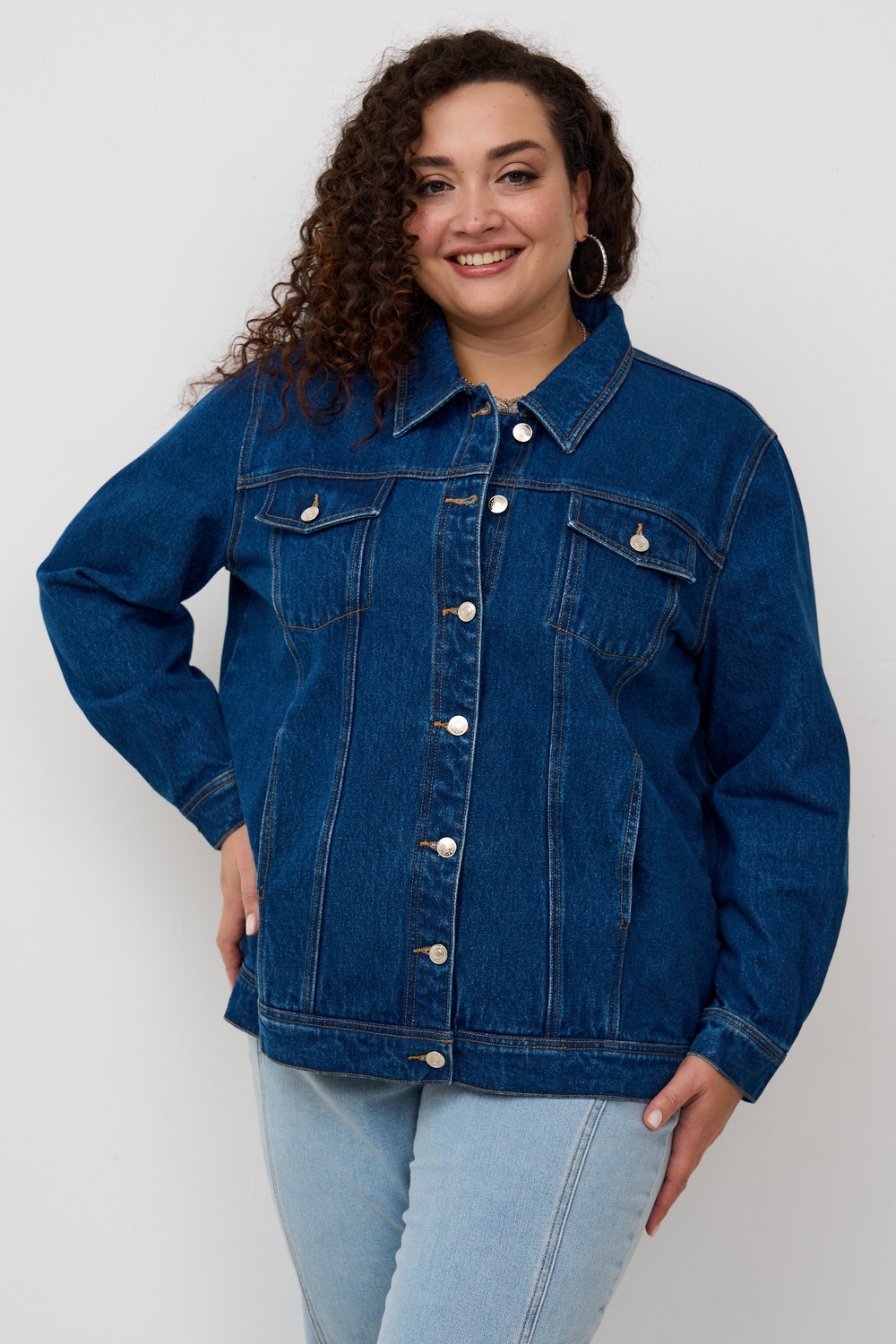 Описание: Женская синяя джинсовка большого размера из хлопка от бренда Интикома (Intikoma)