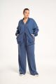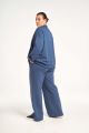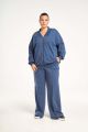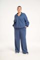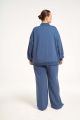 Женский синий спортивный костюм большого размера от бренда Модресс (Modress). Костюм состоит из бомбера и брюк. Бомбер свободный, со спущенным плечевым поясом. Воротник трикотажный. Карманы с листочками. Рукава с трикотажными манжетами, низ изделия с трикотажным поясом. Застегивается бомбер на молнию. Брюки свободные, широкие по всей длине. Пояс трикотажный со шнуром. Костюм выполнен из хлопкосодержащего трикотажного футера.