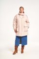 Женская розовая парка большого размера от бренда Модресс (Modress). Парка свободного кроя. Капюшон втачнойна высокой стойке. Рукава спущенные, с защипамипо передним и локтевым швам. Низ рукава на резинке. На талии и по низу изделия выполнены кулиски. Карманы накладные с клапанами, вход в карман сбоку. Декоративные детали: погоны и короткая планка с кнопками. Застегивается парка на тракторную молнию.