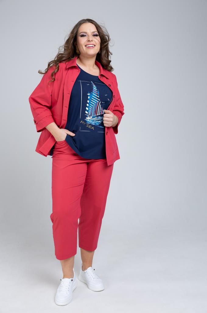 Описание: Женские зауженные книзу коралловые брюки большого размера из смесовой ткани от бренда Терра (Terra)