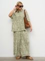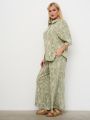 Женские широкие брюки большого размера из вискозы с принтом от бренда Интикома (Intikoma)