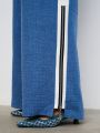 Женские синие широкие брюки большого размера из смесовой ткани от бренда Интикома (Intikoma). Стильный комплект можно составить с блузкой 2219