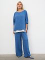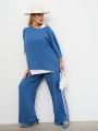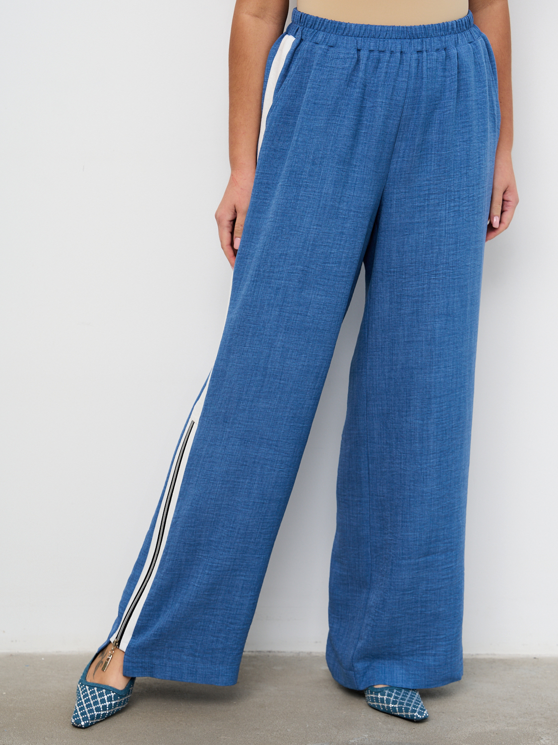 Описание: Женские синие широкие брюки большого размера из смесовой ткани от бренда Интикома (Intikoma). Стильный комплект можно составить с блузкой 2219