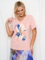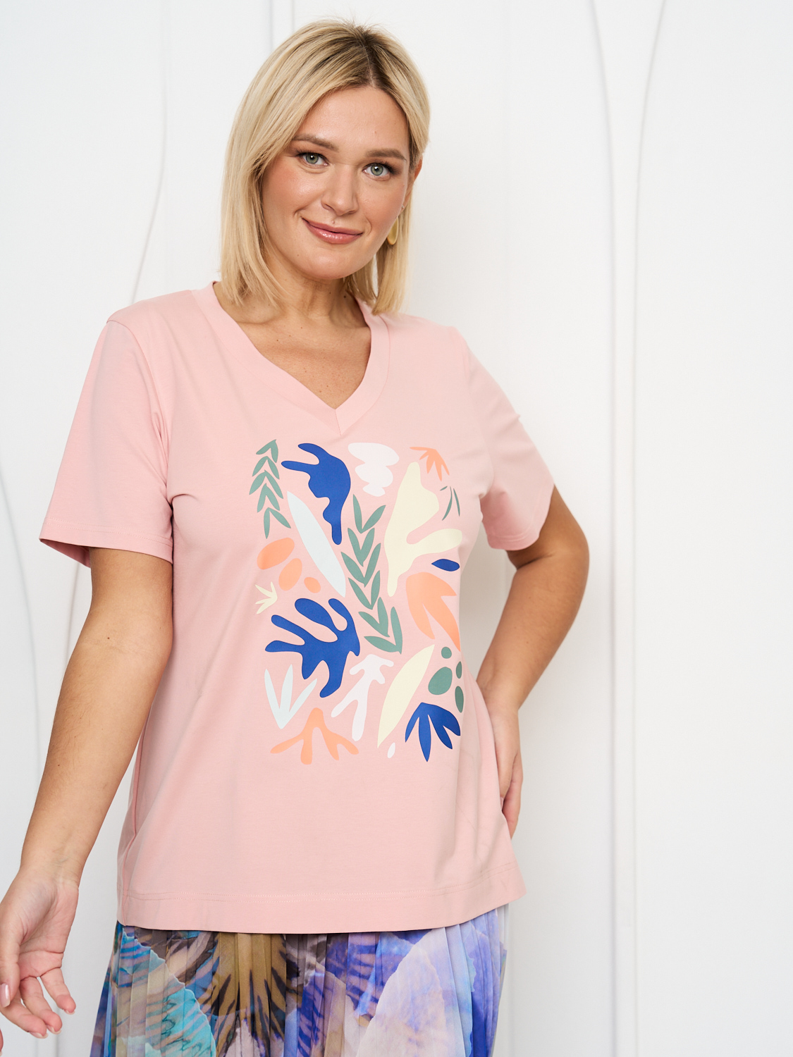 Описание: Женская розовая футболка большого размера с принтом из вискозы от бренда Интикома (Intikoma)