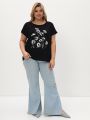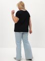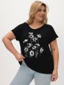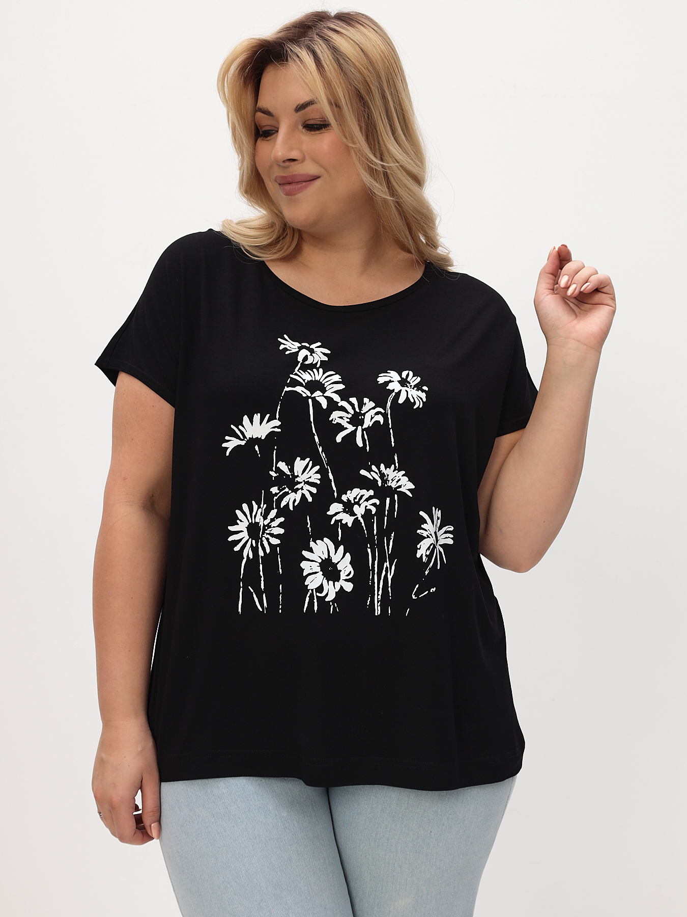 Описание: Женская черная с принтом футболка большого размера из вискозы от бренда Интикома (Intikoma)