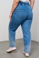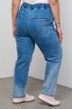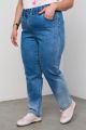 Женские голубые джинсы большого размера с градиентом от бренда Интикома (Intikoma). Джинсы с плавным градиентом из белого в светло-голубой оттенок. Детали: функциональные карманы по переду, застежка - пуговица на поясе и гульфик на молнии, пояс на резинке, накладные карманы на спинке.