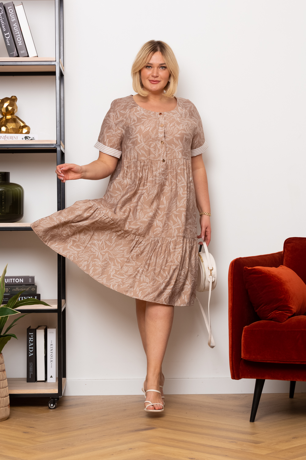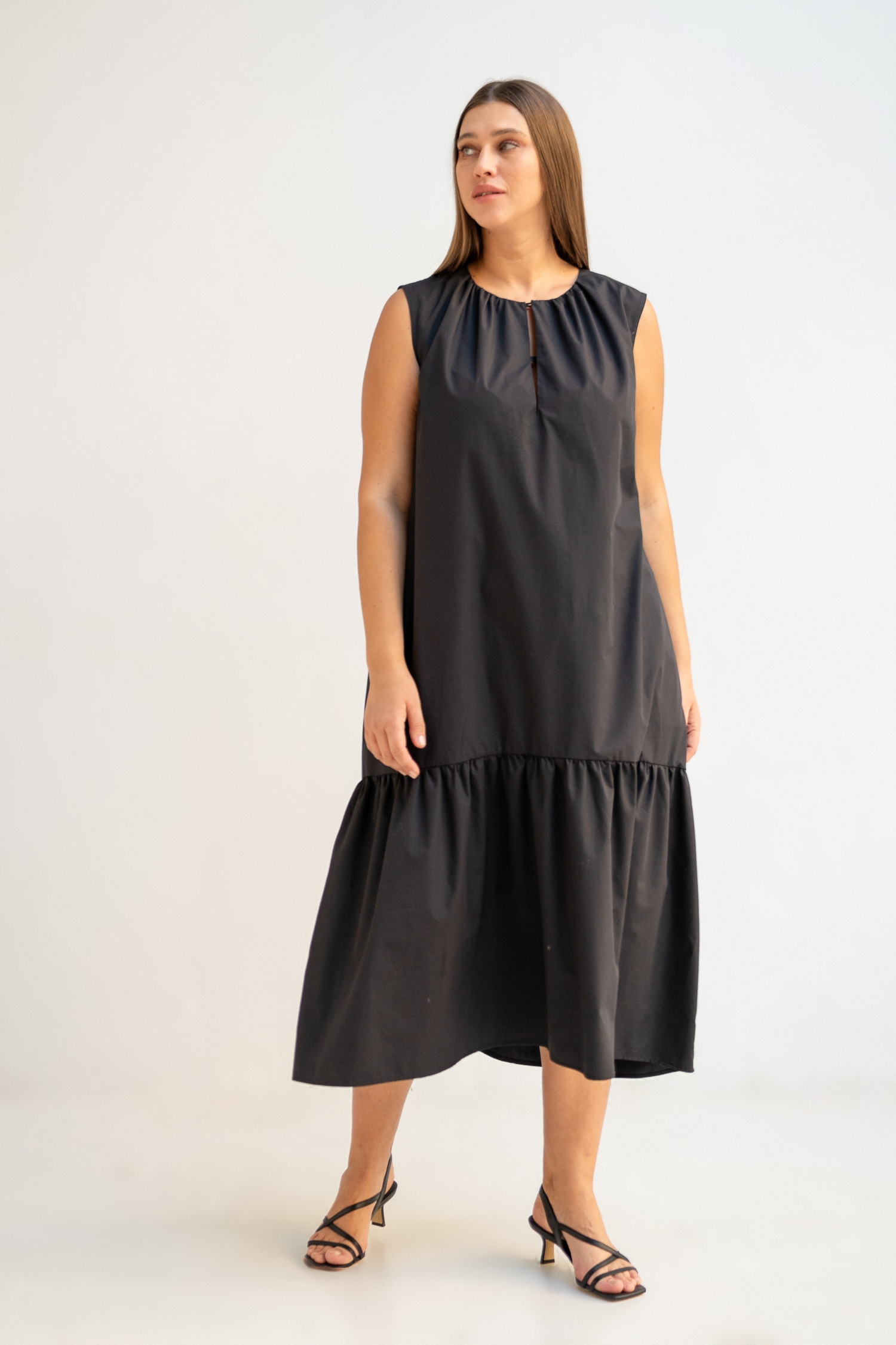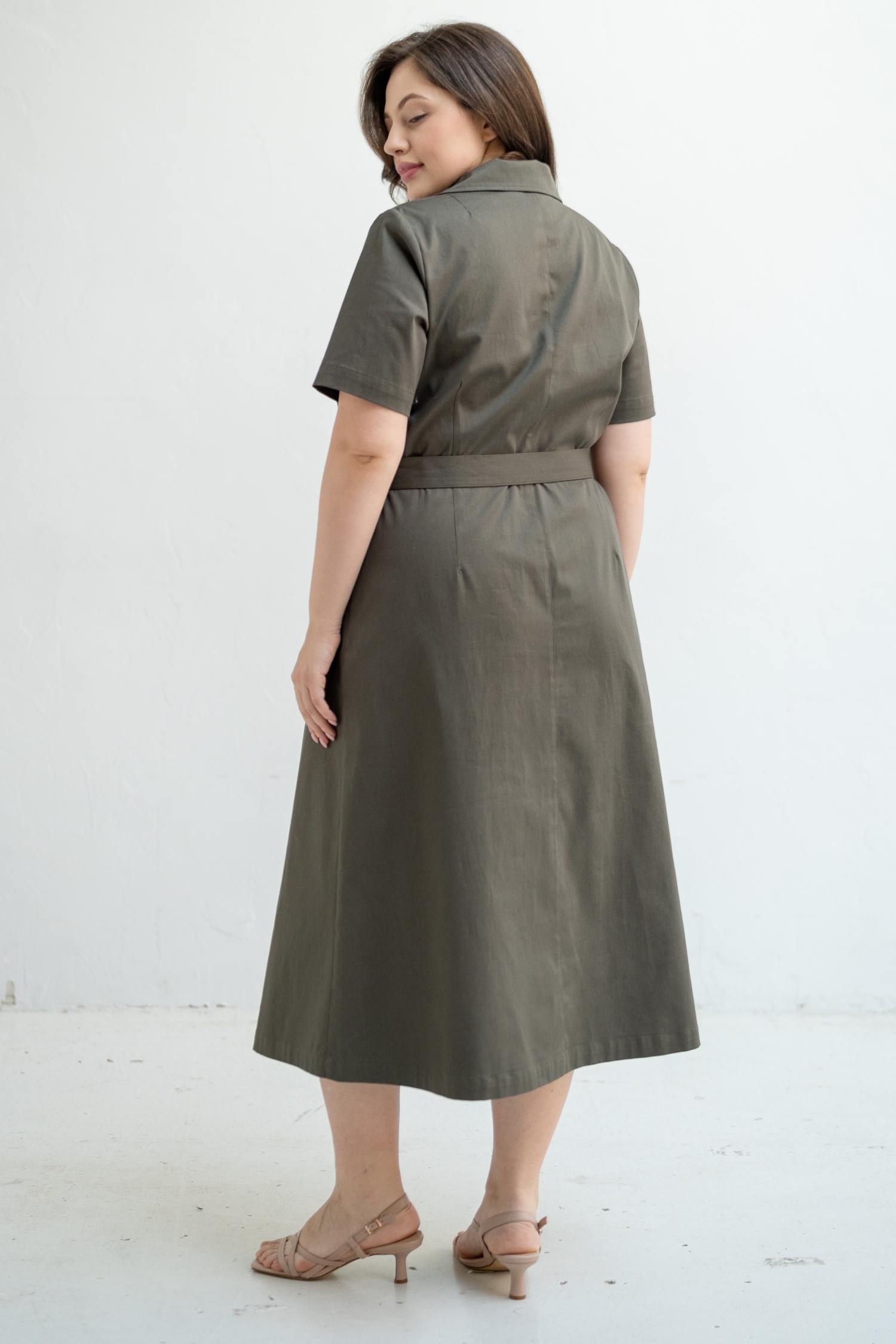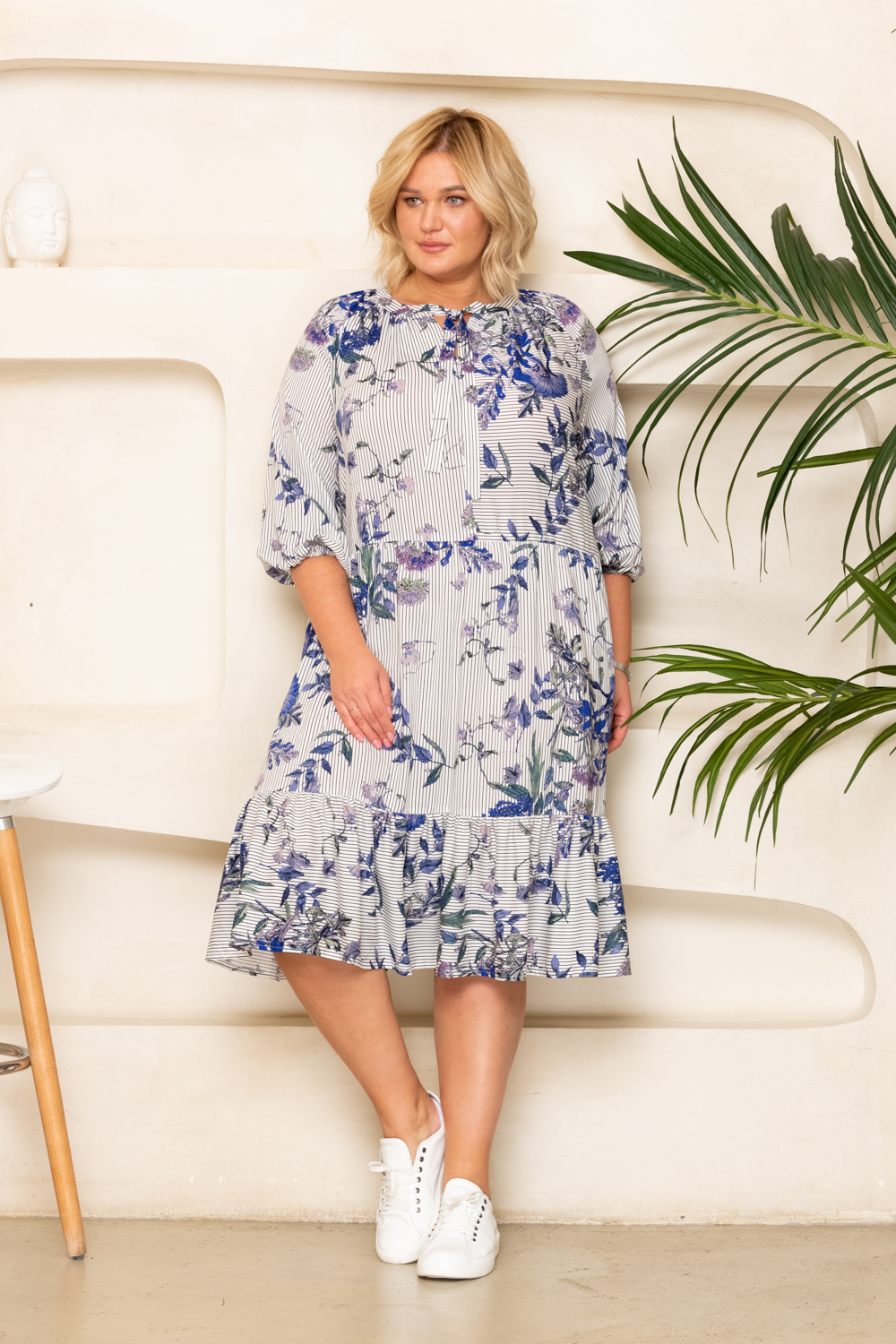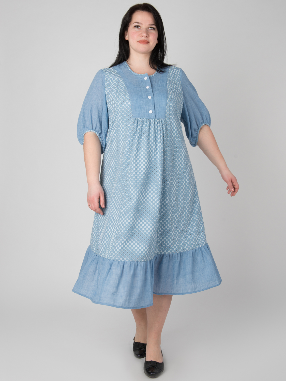 Описание: Женское голубое платье большого размера из льна от бренда Интикома (Intikoma). Детали: накладной карман «кенгуру»,прямой силуэт, горловина округлая стойка с игривыми завязками и растегивающей планкой на 2 пуговицы.