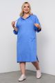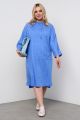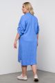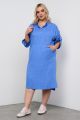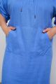 Женское голубое платье большого размера из льна от бренда Интикома (Intikoma). Детали: накладной карман «кенгуру»,прямой силуэт, горловина округлая стойка с игривыми завязками и растегивающей планкой на 2 пуговицы.
