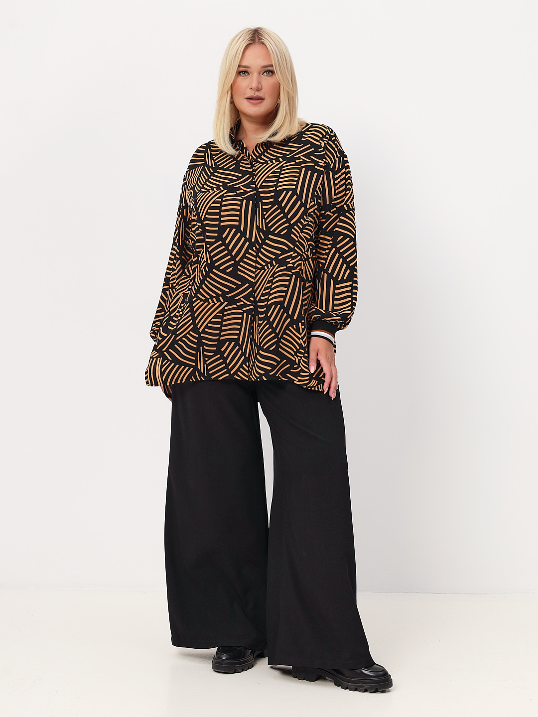 Описание: Женская горчичная с принтом рубашка большого размера из льна и хлопка от бренда Интикома (Intikoma)