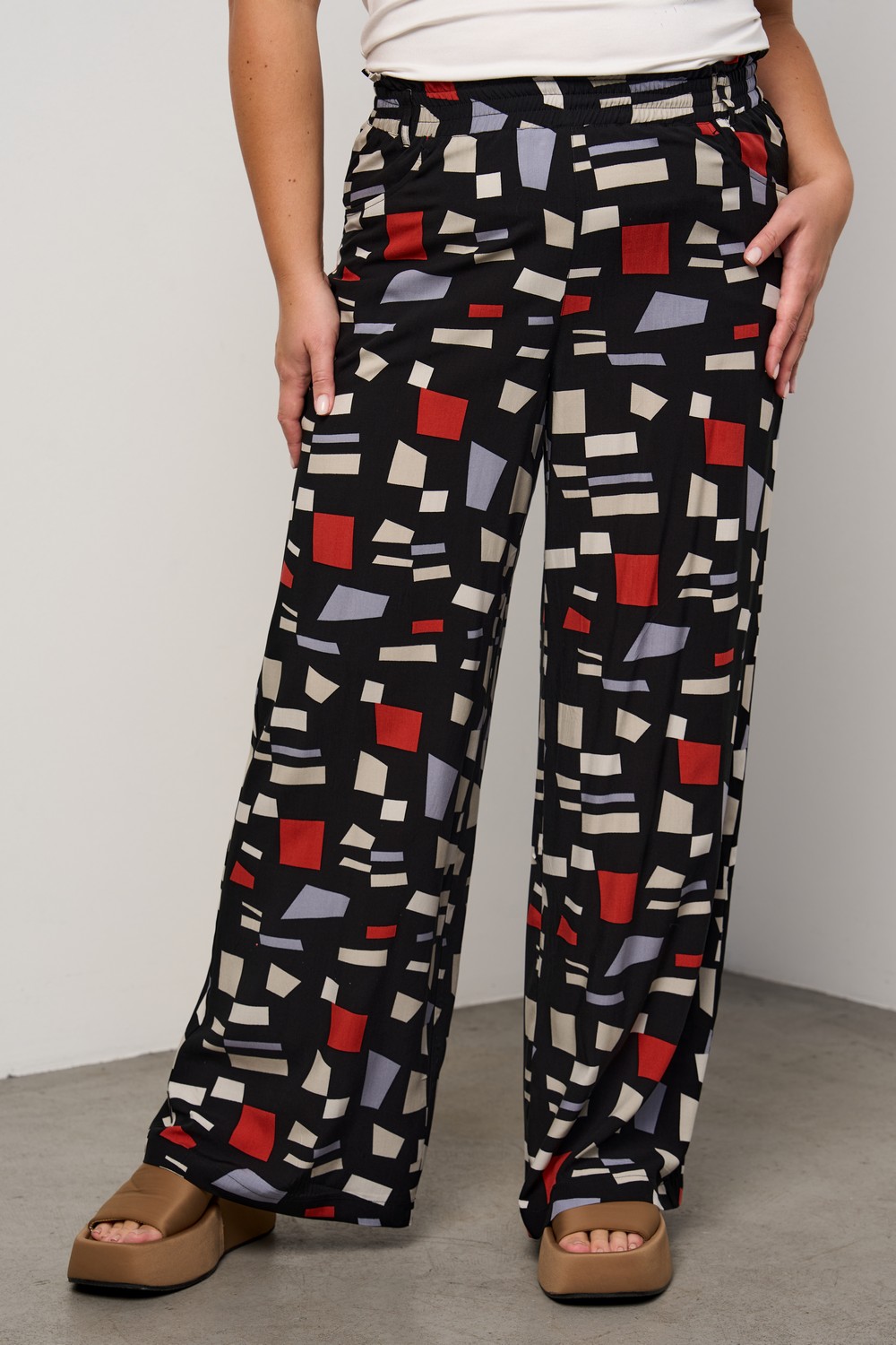 Описание: Женские черные брюки-палаццо большого размера с абстрактным принтом из вискозы от бренда Интикома (Intikoma). Стильный комплект можно составить с рубашкой 224064