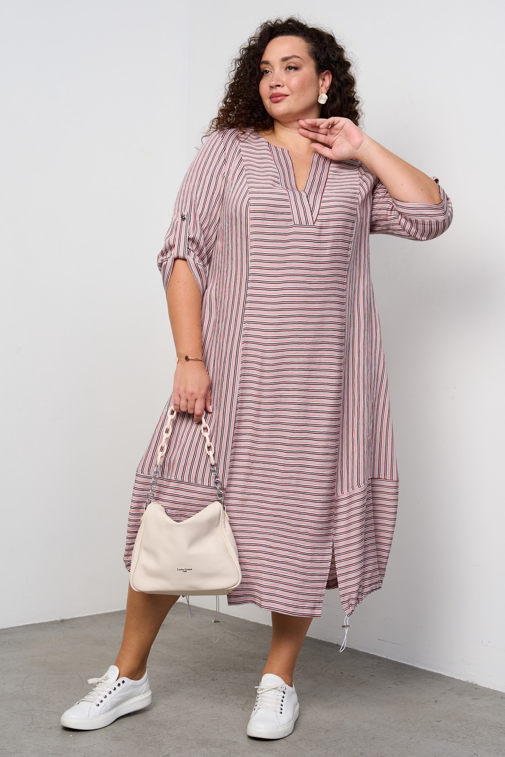 Описание: Женское летнее макси платье большого размера в полоску из поливискозы от бренда Интикома (Intikoma). Платье из лёгкой струящейся поливискозы отлично подходит для летних образов на каждый день. Карманы в боковых швах.