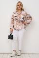 Женская бежевая с принтом блузка большого размера из вискозы свободного кроя от бренда Интикома (Intikoma). Детали: прямой силуэт, центральная застежка на пуговицах, линия плеча на месте, пикантность рубашке придает ненавязчивый разрез, широкий рукав на манжете. Разрезы по боковым швам.