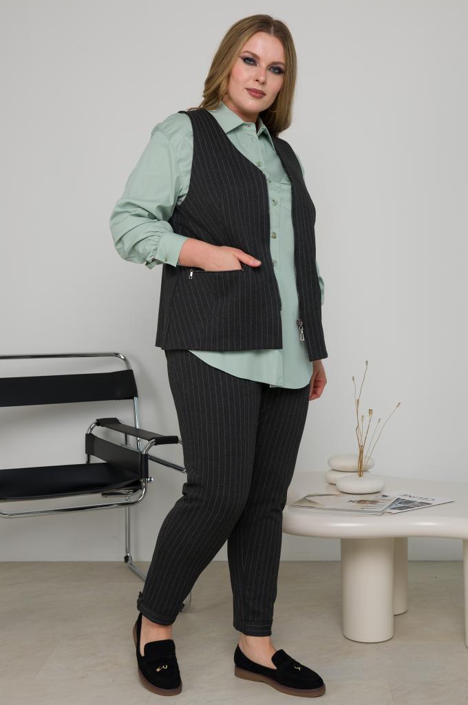 Женские темно-серые брюки большого размера в полоску зауженные книзу из смесовой ткани от бренда Терра (Terra). Стильный образ можно составить с жилетом Ок24-022 и рубашкой ОК24-011
