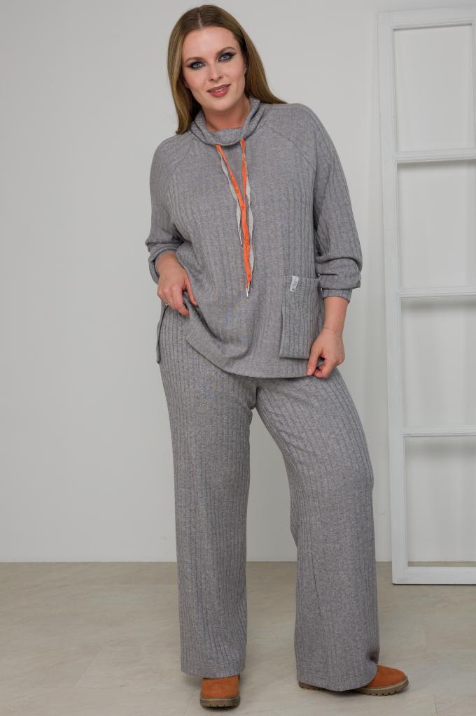 Описание: Женский серый костюм большого размера из смесовой фактурной ткани от бренда Терра (Terra)
