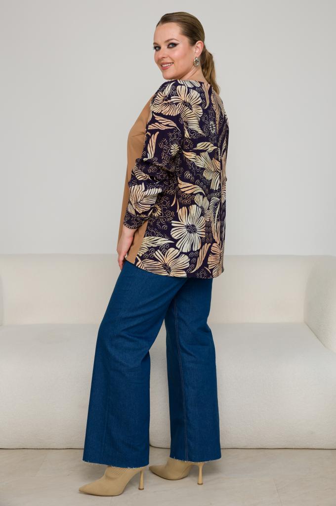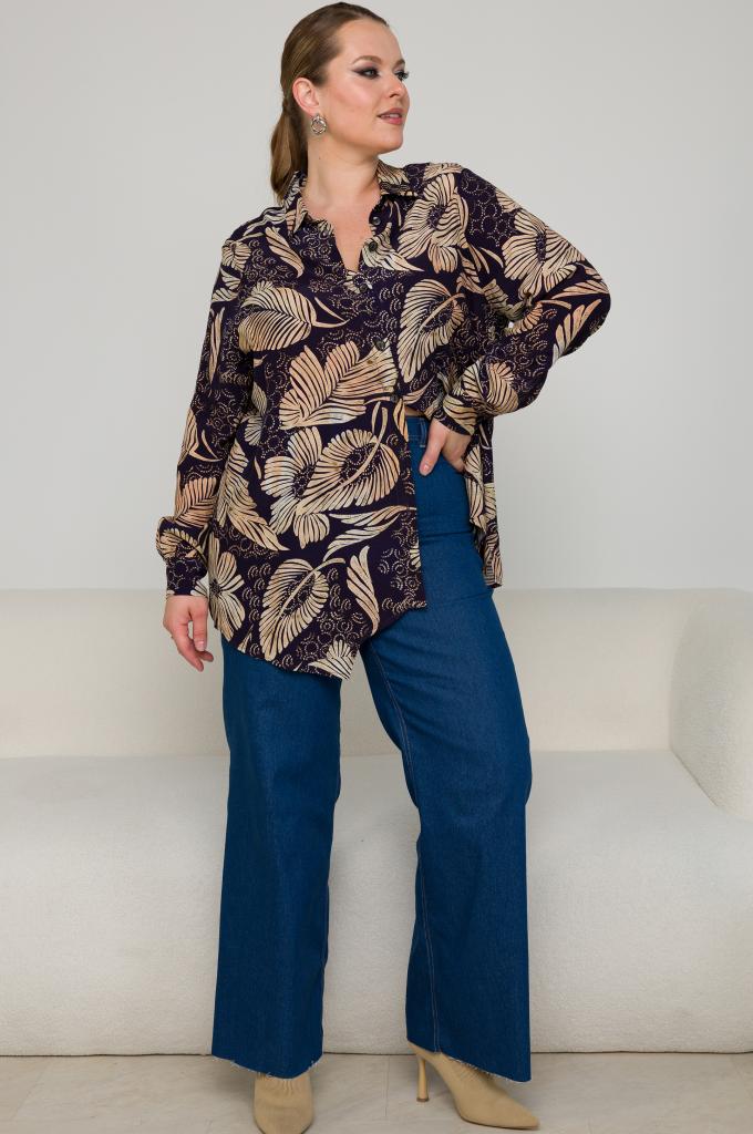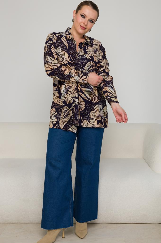Описание: Женская удлиненная рубашка большого рзмера с принтом листья из вискозы от бренда Терра (Terra)