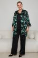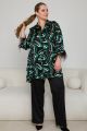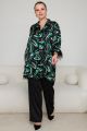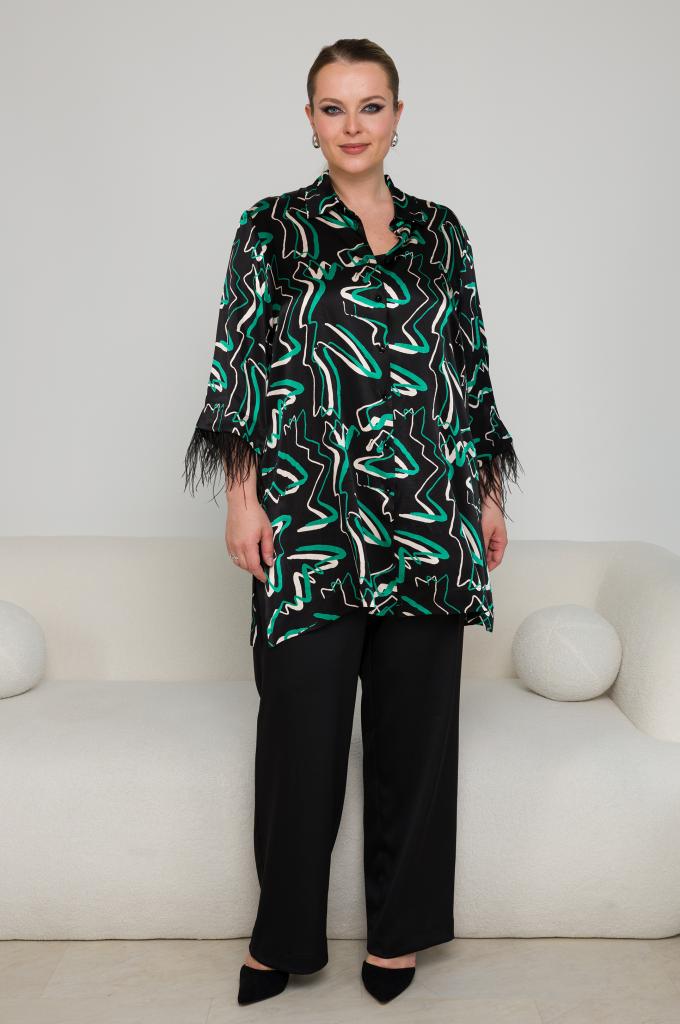 Описание: Женская удлиненная черная с зеленым принтом нарядная рубашка большого размера из вискозы от бренда Терра (Terra). Рукава декорированы перьями