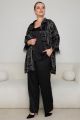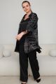 Описание: Женская удлиненная черная с принтом нарядная рубашка большого размера из вискозы от бренда Терра (Terra). Рукава декорированы перьями