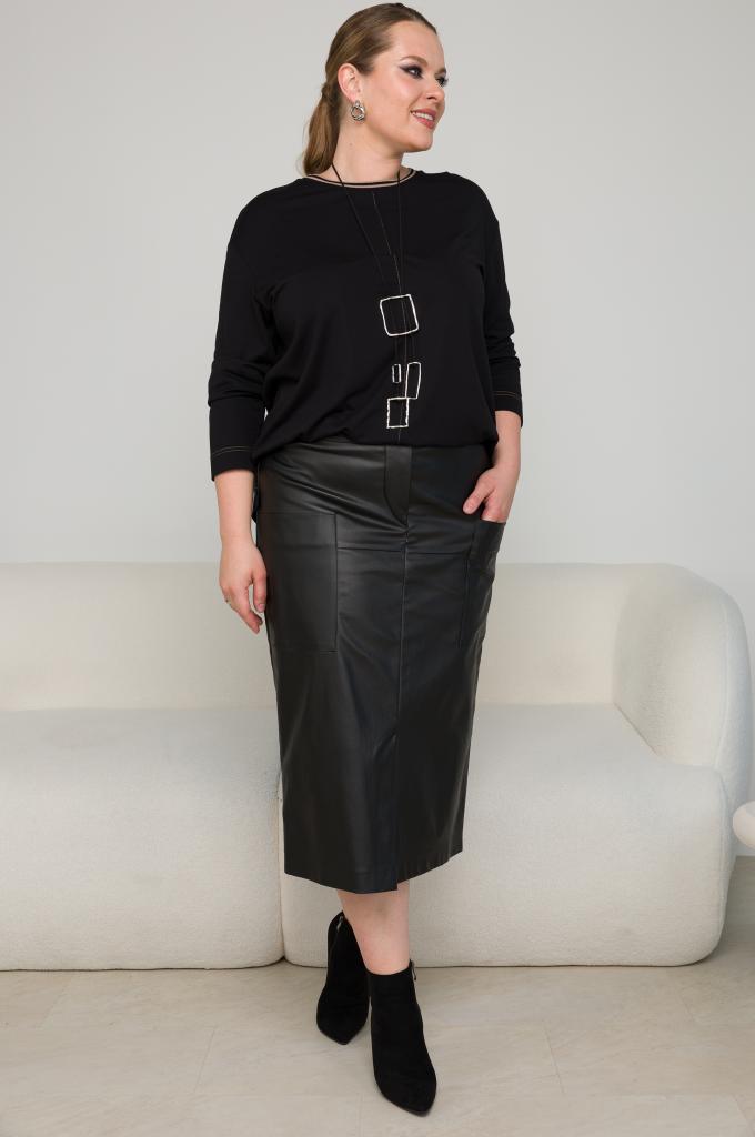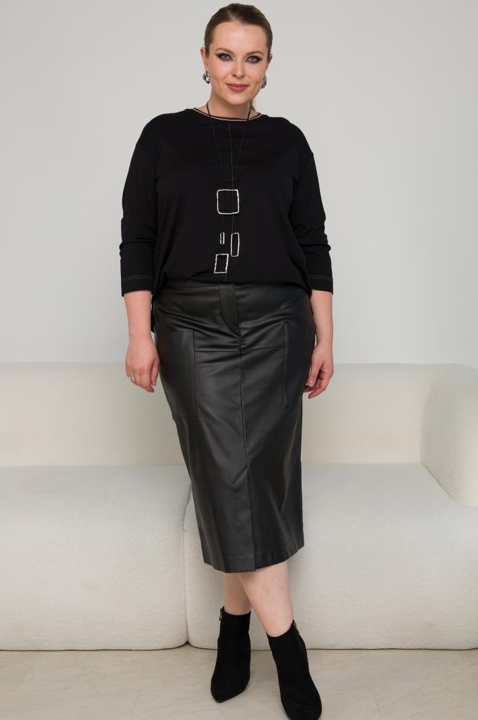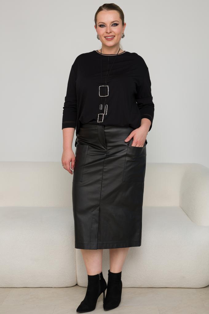 Описание: Женская черная макси юбка большого размера из экокожи от бренда Терра (Terra)