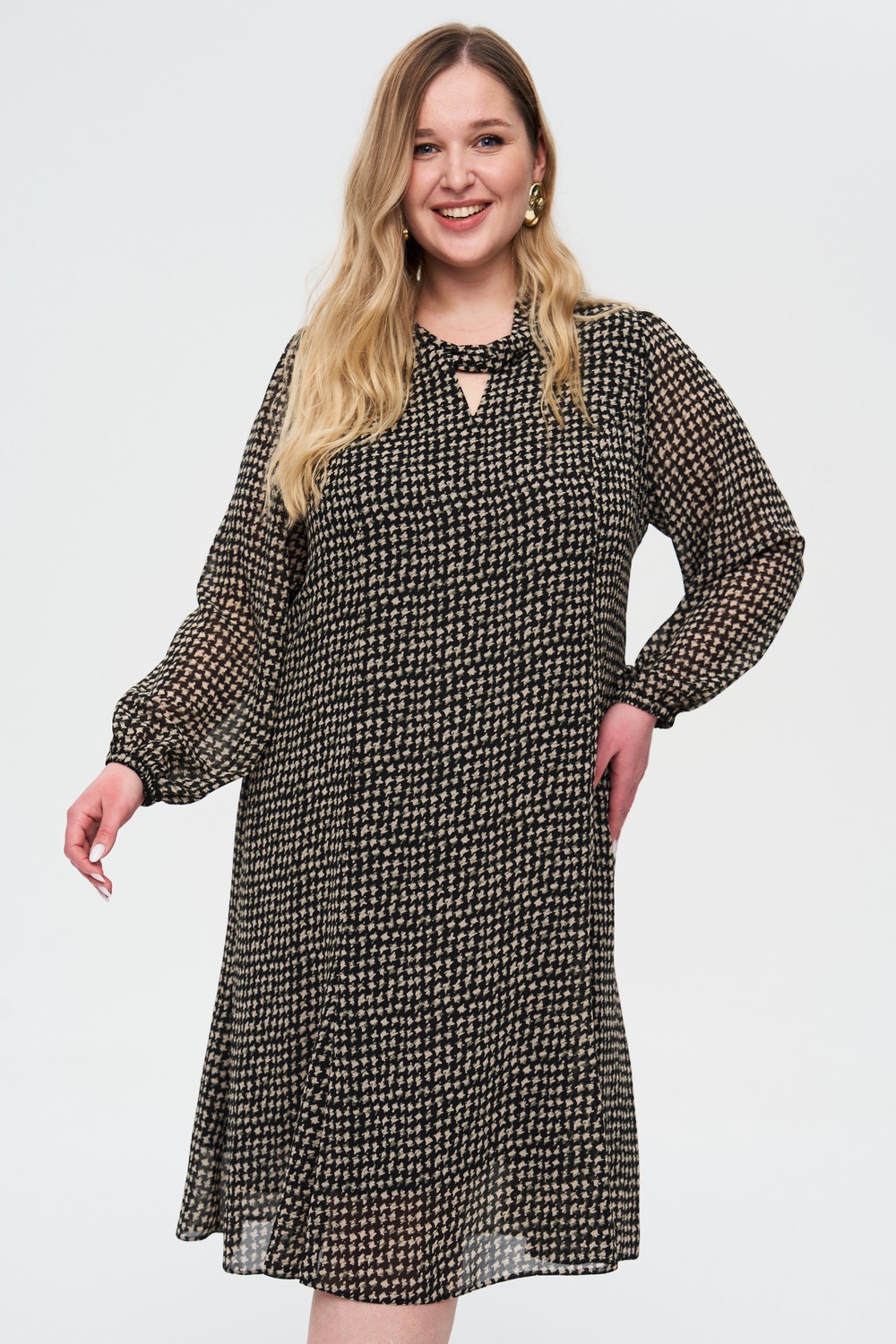Женское бежевое платье больших размеров из шифона с поясом от бренда intikoma (Интикома). Элегантное , женственное платье выполнено из легкого струящегося шифона на дышащей подкладке из шифона. Платье дополнено длинным поясом из основной ткани.