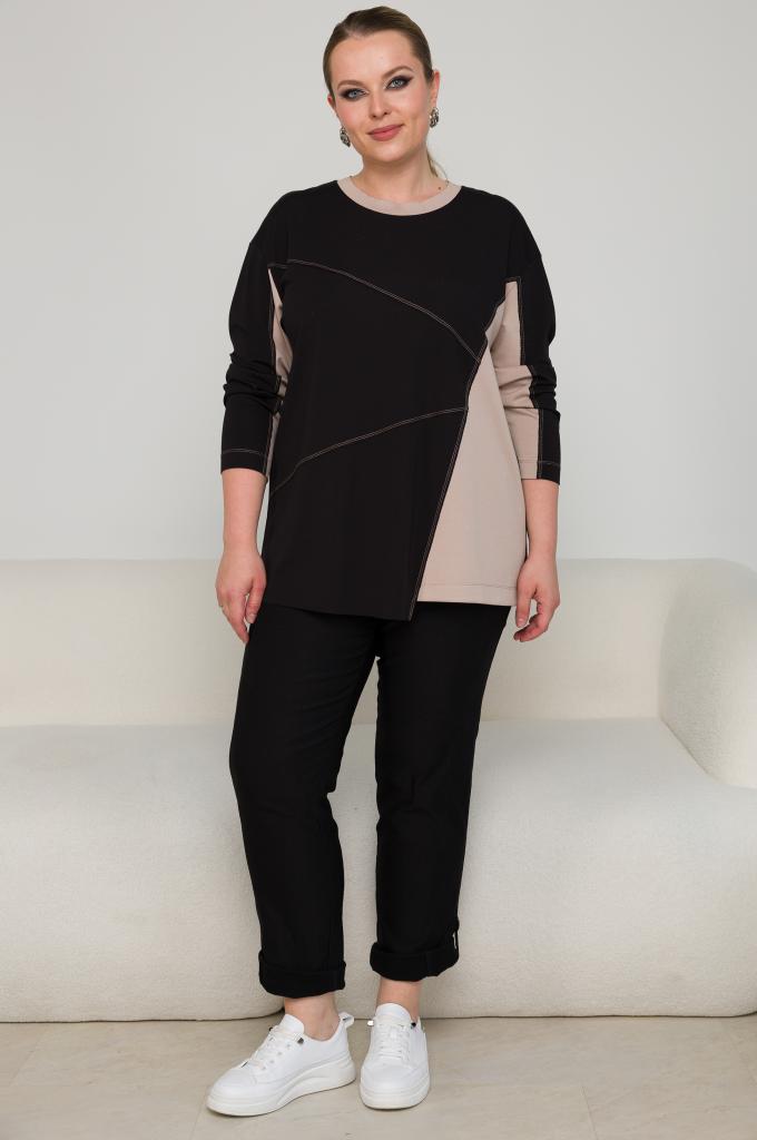 Описание: Женский черно-бежевый джемпер большого размера из смесовой ткани от бренда Терра (Terra)