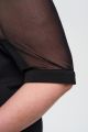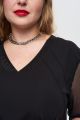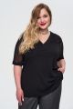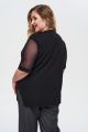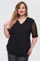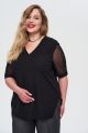 Женская черная блуза большого размера с короткими полупрозрачными рукавами из вискозы от бренда Интикома (Intikoma). Модель прямого кроя, со спущенной линией плеча, свободным рукавом из сетки на манжете, V-образной горловиной, декоративными защипами по переду.