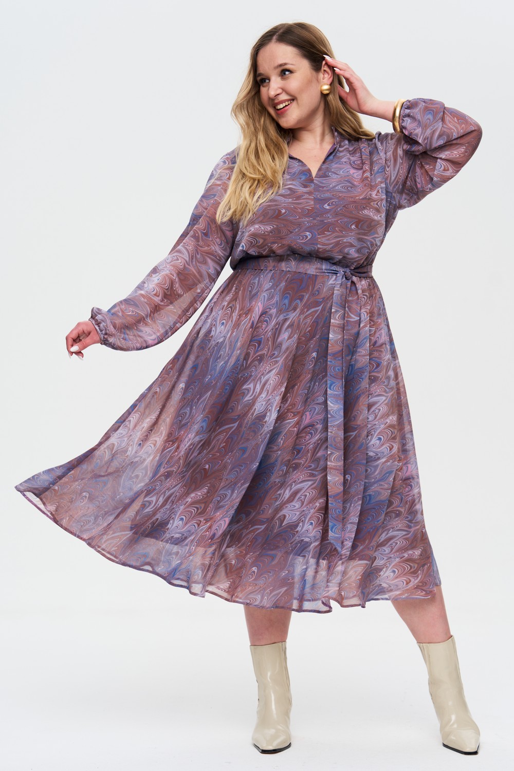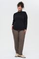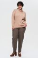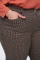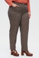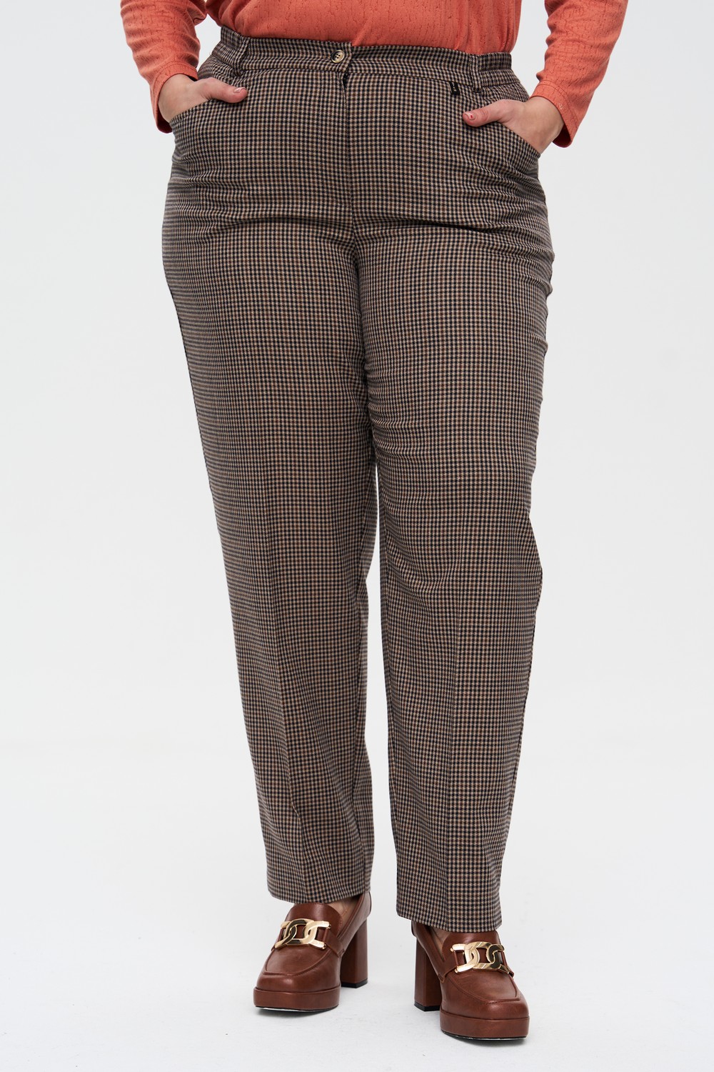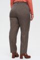 Женские классические коричневые брюки большого размеры в клетку из смесовой ткани от бренда Интикома (Intikoma). Детали: пояс частично на резинке, по переду карманы, застежка пуговица на поясе и гульфик на молнии, по низу декоративные разрезы.