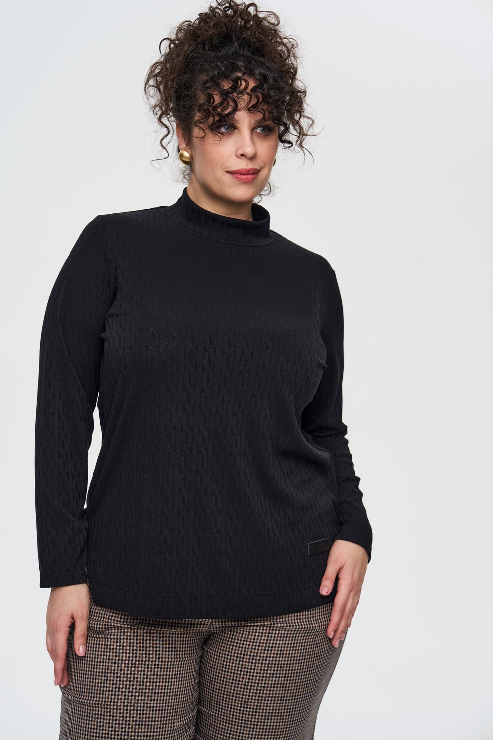 Описание: Женская черная трикотажная водолазка большого размера с жакардовым рисунком из вискозы от бренда Интикома (Intikoma)