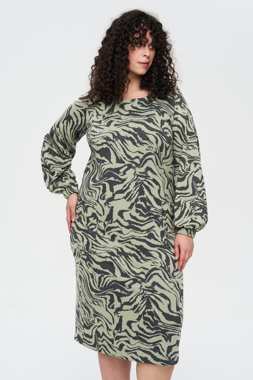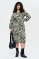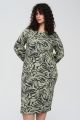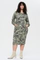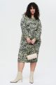 Женское зеленое платье-футляр большого размера с анималистическим принтом из трикотажного джерси от бренда Интикома (Intikoma)