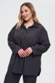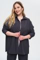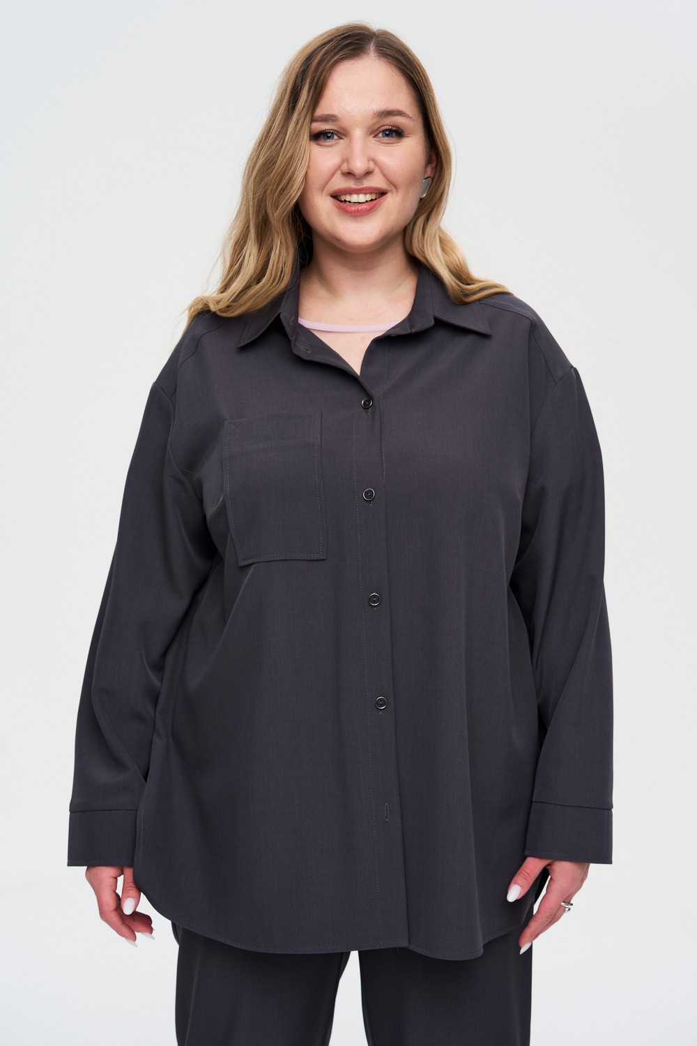 Описание: Женская удлиненная серая рубашка большого размера свободного кроя от бренда Интикома (Intikoma). Модель прямого силуэта, среднего объёма, с спущенной линией плеча, стояче-отложным воротником на стойке, длинным рукавом на манжете без пуговицы, центральная застёжка на пуговицы. Рубашка идеально составляет однотонный тотал-лук с брюками Монблан.