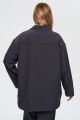 Женская удлиненная серая рубашка большого размера свободного кроя от бренда Интикома (Intikoma). Модель прямого силуэта, среднего объёма, с спущенной линией плеча, стояче-отложным воротником на стойке, длинным рукавом на манжете без пуговицы, центральная застёжка на пуговицы. Рубашка идеально составляет однотонный тотал-лук с брюками Монблан.