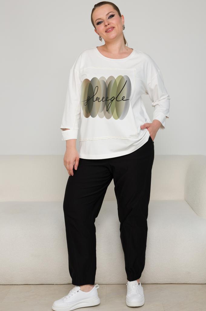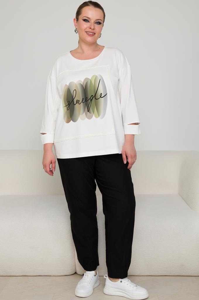 Описание: Женский молочный джемпер большого размера из хлопка с принтом от бренда Терра (Terra)