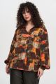 Женская разноцветная блузка большого размера из высококачественной вискозы от бренда Интикома (Intikoma).Эффектная блуза без застёжки подчеркнёт вашу элегантность и сдержанность. Детали: прямой свободный силуэт, складка по центру переда, V-образная горловина- придаст пикантность образу, спущенное плечо, свободные рукава полной длины с манжетой по низу.