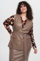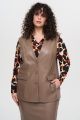 Женский бежевый жилет Сингер одеждабольшоих размеров бренд Интикома (Intikoma). Жилет из экокожи с трикотажными вставками. Жилет позволяет создавать множество креативных и стильных образов, идеальный выбор для современной женщины. Детали: полуприлегающий силуэт, центральная застежка на пуговицы, карманы в шве. В комплекте пояс из трикотажа. Стильный комплект можно составить с юбкой 624307