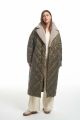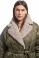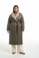 Описание: Женское демисезонное утепленное коричневое пальто-халат большого размера от бренда Modress (Модресс). Пальто прямого силуэта со съемным поясом. Воротник английский с лацканами, который, при желании, можно застегнуть до верха на дополнительную пуговицу. Воротник отделан искусственным мехом «овчинка». Плечевой пояс спущен, это обеспечивает отличную посадку на любую форму плеч. Боковые карманы прорезные с листочками. Застегивается пальто на потайные кнопки. Изделие выполнено из стеганой плащевой ткани с водоотталкивающими свойствами.