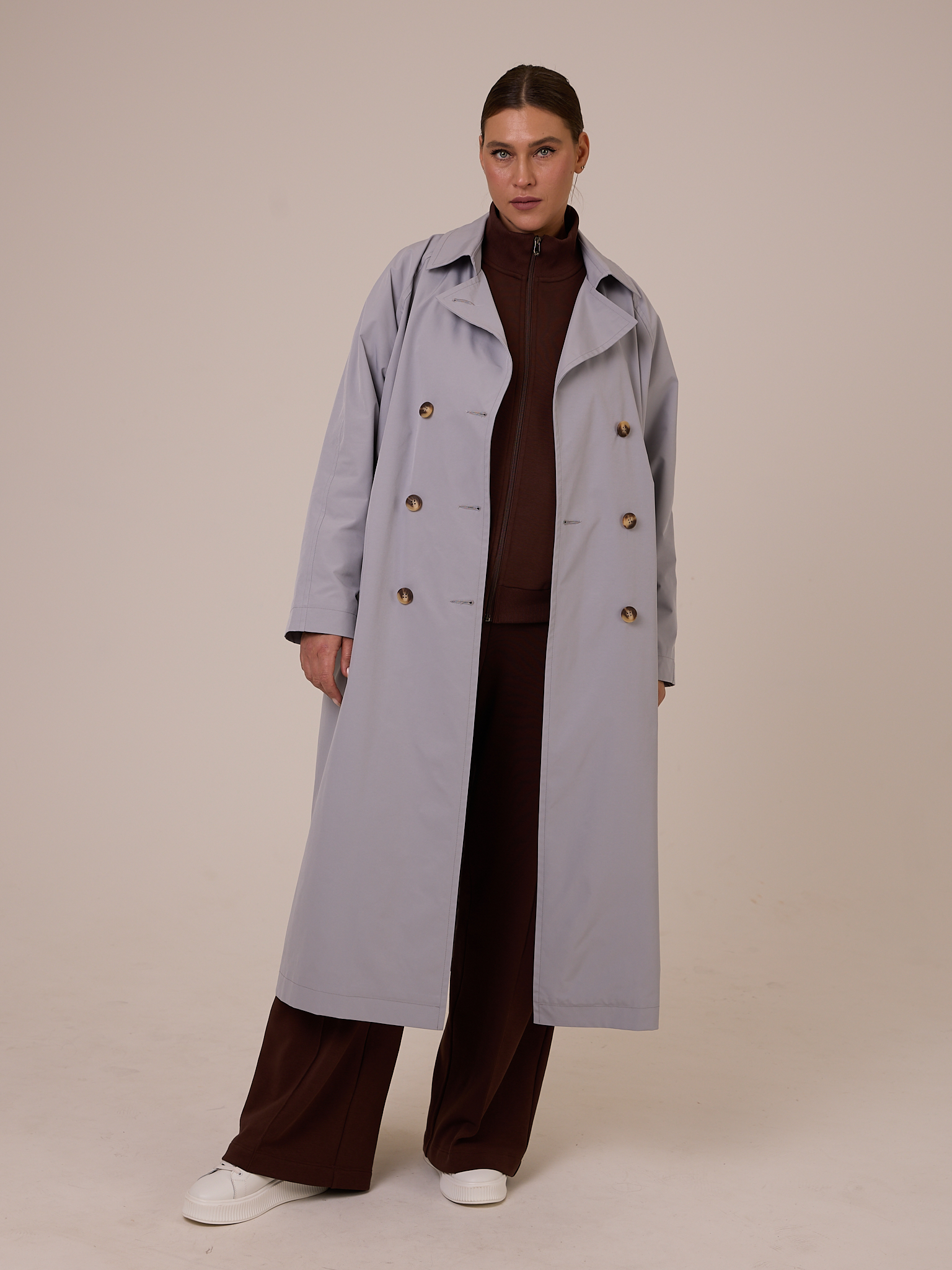 Женское зимнее пуховое молочное пальто А-образного силуэта большого размера от бренда Modress (Модресс). Пальто двубортное, с английским воротником, который, при желании, можно застегнуть до верха на дополнительную пуговицу. Карманы прорезные с листочками. Пальто длиной чуть ниже колен, застегивается на декоративные и потайные кнопки. Есть внутренний карман на подкладке. При изготовлении применяется двухслойный пухпакет.