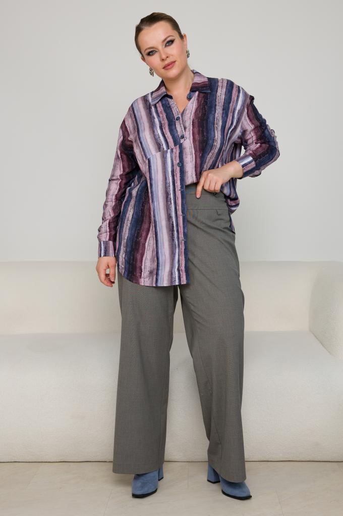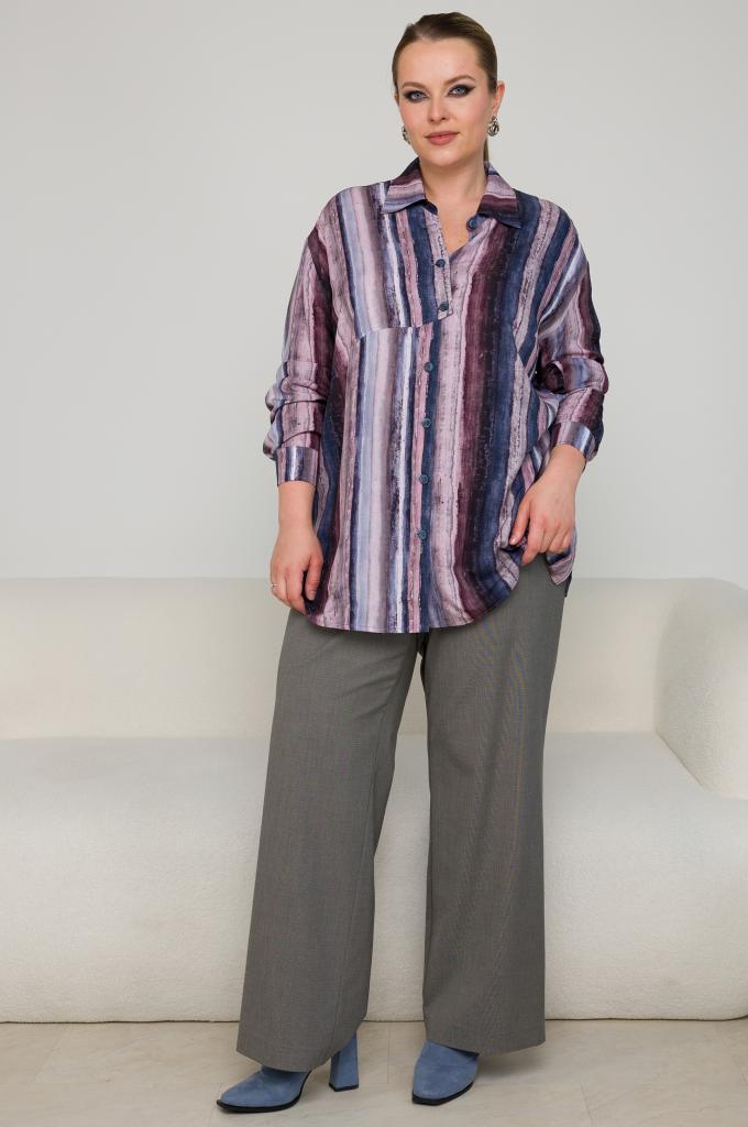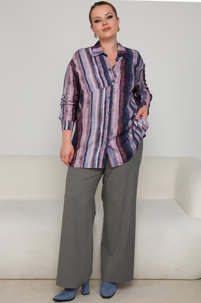 Описание: Женская синяя полосатая рубашка большого размера в полоску из вискозы от бренда Терра (Terra)