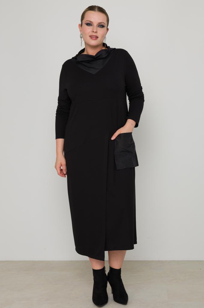 Описание: Женское черное макси платье большого размера из смесовой ткани с комбинированной вставкой от бренда Терра (Terra)