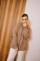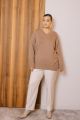 Женский трикотажный коричневый джемпер большого размера от бренда Модресс (Modress). Джемпер свободного кроя с рукавами реглан. Длиной ниже линии бедер. Вырез горловины V-образный. Джемпер выполнен из хлопковой пряжи с содержанием акрила.