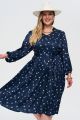 Женское синее с принтом миди платье большого размера из поливискозы от бренда Интикома (Intikoma). Детали: А- силуэт, рукава укороченной длины на манжете,V-образная горловина.Волан по низу сделает Вашу походку легкой и летящей.Идеальный выбор для комфортного и стильного образа.